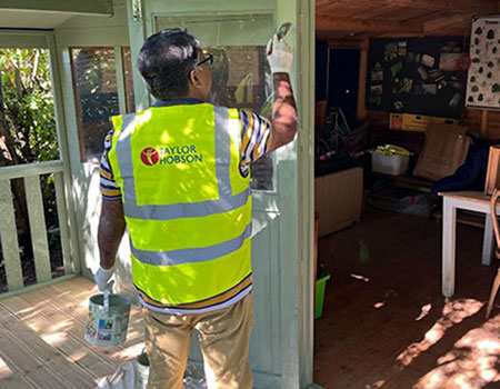 In 2022, the Taylor Hobson team organized a volunteer week, during which employees transformed a dilapidated building and overgrown garden, known as The Backyard, into a usable space on the local community allotment that Bamboozle uses for its projects.