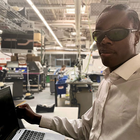 Widme at his 2025 AMETEK Internship with Laserage in Illinois, USA. How has your internship been, and what have you enjoyed working on?